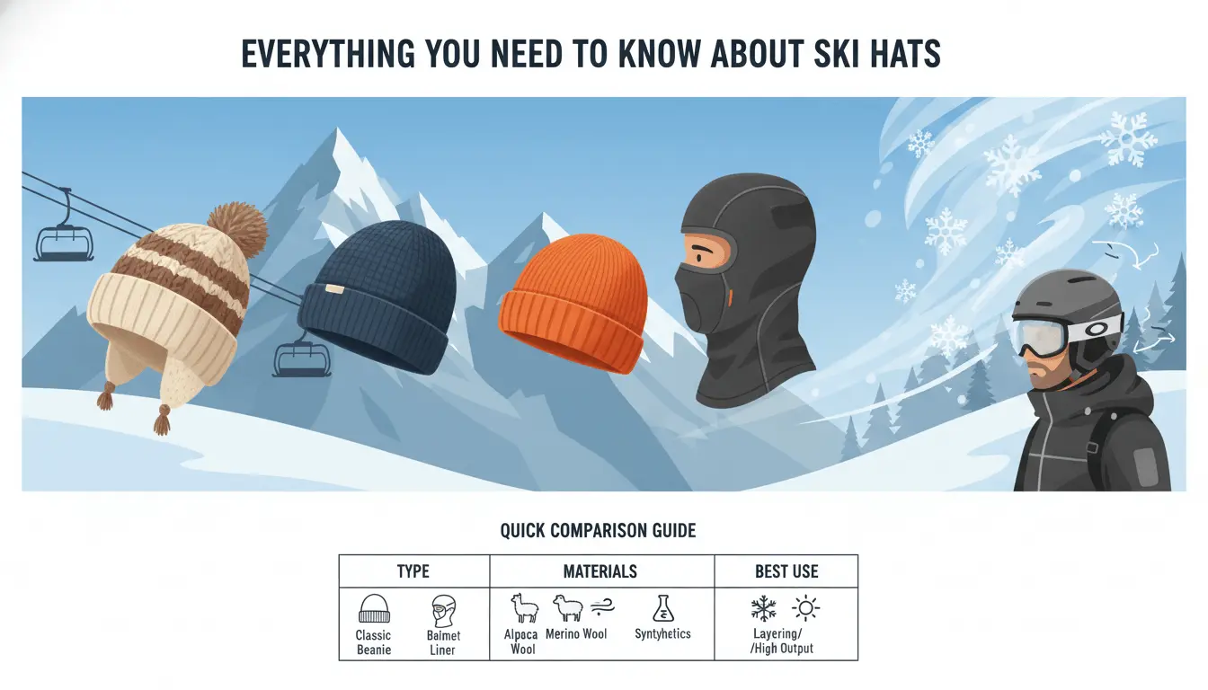 Quick comparison table - Ski Hats (types, materials, best use)