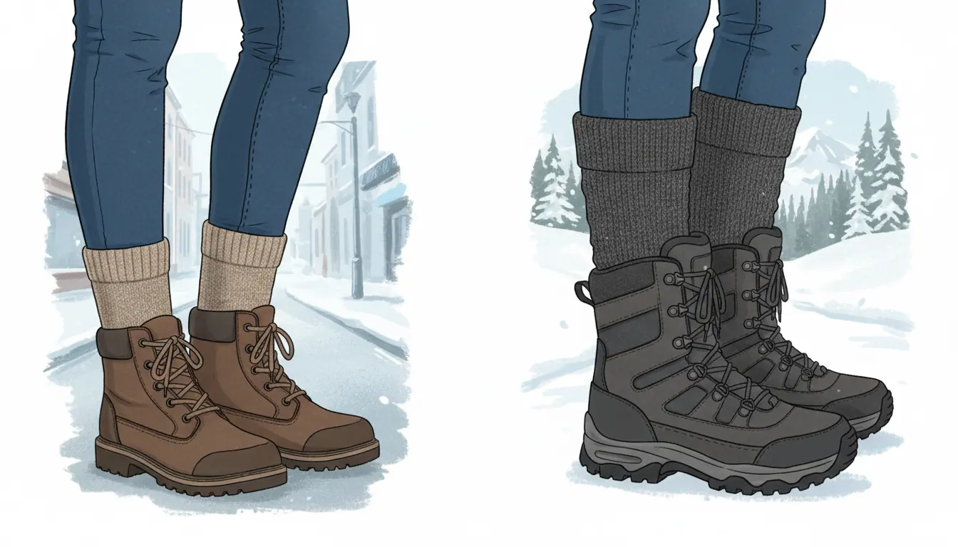 A common mistake is choosing a heavyweight sock for a boot that is already tight. If the sock removes all the "dead air" space inside the boot, you will likely feel colder. We recommend trying on your winter boots with the socks you intend to wear to ensure there is enough room to wiggle your toes.